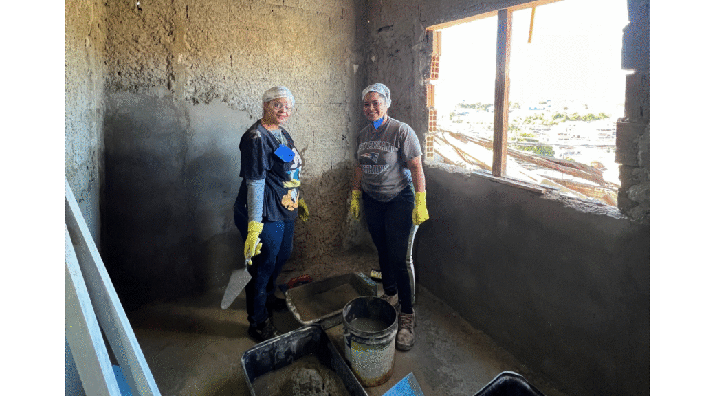 E nosso trabalho, investimos no desenvolvimento de competências práticas para que as mulheres possam planejar e construir com mais autonomia: medir, desenhar, calcular materiais, organizar a obra. Isso reduz desperdícios, o que é essencial em contextos de escassez e, com isso, diminui impactos ambientais. Também trabalhamos com técnicas construtivas alternativas e sistemas híbridos, combinando métodos convencionais com soluções que reduzem o uso de cimento e o impacto ambiental, muitas vezes com menor custo. Por fim, há uma mudança cultural importante: passamos a entender a construção não como um produto, mas como um processo coletivo, baseado no cuidado, na troca de saberes e na responsabilidade com os recursos.